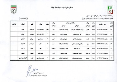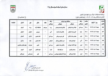 اعلام برنامه مسابقات هفته های دوم تا پنجم ليگ دسته اول فوتبال بانوان