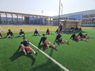 شاگردان ارمغان احمدی ابتدا با حضور در چمن مصنوعی این مجموعه به گرم کردن بدن‌ها و در ادامه تمرین روندو و ارسال ضربات ایستگاهی مشغول شدند.