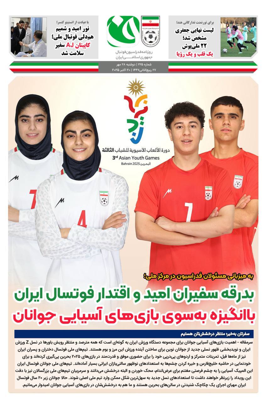 شماره 225 روزنامه الکترونیکی فدراسیون فوتبال منتشر شد.